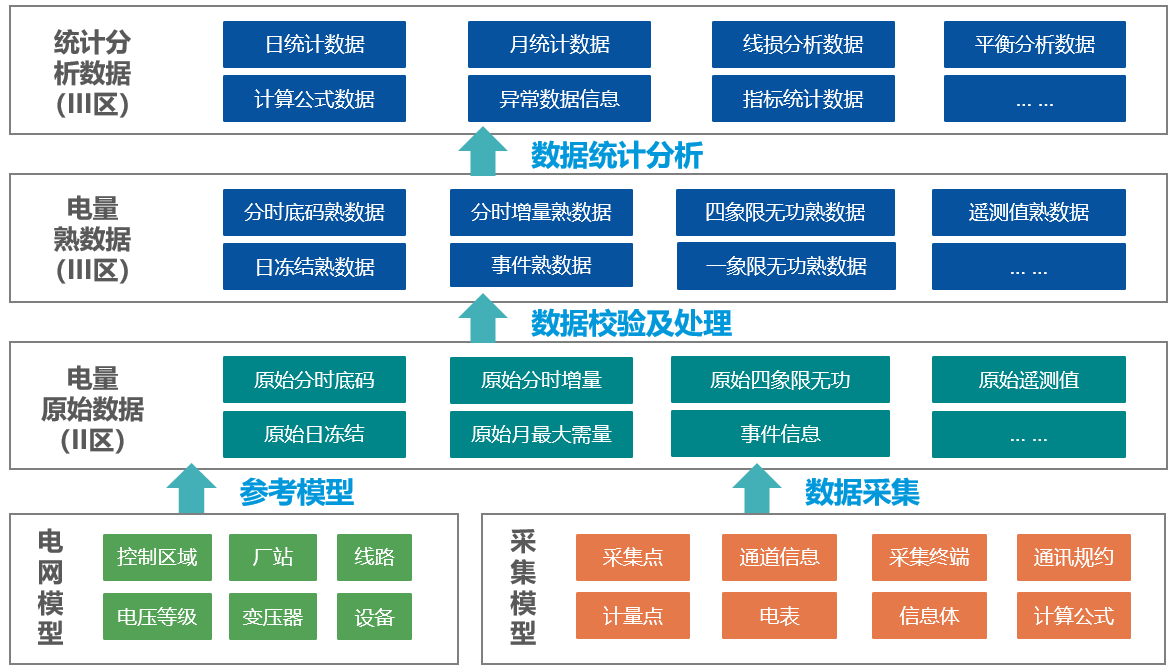 The system technically achieves minute-level collection of 22 operational data items from power meters at substations/gateways. It employs distributed task scheduling and business collaboration methods for real-time electricity amount data collection and verification, ensuring data timeliness and accuracy. Through high-speed data transmission, the electricity amount data is delivered to various data analysis layers for modeling and visualization, thereby better supporting user business operations.