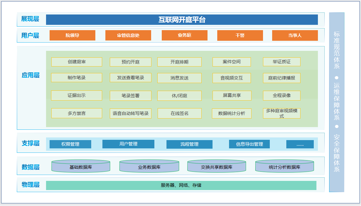 This solution delivers an all-in-one courtroom service platform with comprehensive features, enabling seamless access to a wide array of courtroom services. This platform facilitates the setup of courtrooms, scheduling of sessions, creation of case spaces, audio and video interactions, sharing of evidence materials and transcripts, witness testimony and cross-examination, multi-party conferencing, automated transcription of court proceedings into transcripts, and mobile phone signatures, all within a unified system for enhanced convenience and efficiency.