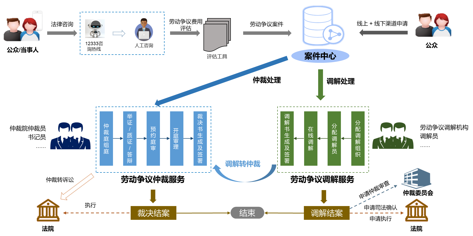 The Labor and Personnel Dispute Arbitration Service Solution is designed to offer a judicial guarantee that is fair, transparent, efficient, and convenient. By bolstering the adjudication process for labor and personnel disputes and related matters, it plays a crucial role in fostering a stable, equitable, transparent and predictable business environment. Through its proactive measures, this solution aims to establish a framework in which workers can engage in their roles with peace of mind, entrepreneurs can invest and operate with confidence, and a robust rule of law environment can be cultivated. This environment is essential for sustaining healthy social and economic development and fostering a stable and harmonious community.