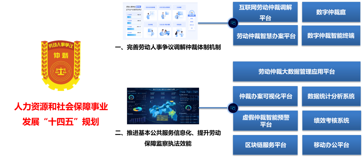 This solution has been aligned with the directives outlined in the "14th Five-Year Plan for the Development of Human Resources and Social Security" and other policy documents from the Ministry of Human Resources and Social Security. Rooted in the fundamental tenets of "convenience, efficiency, intelligence, and confidentiality", and leveraging state-of-the-art technologies, this solution offers an array of innovative tools. These tools include the online labor arbitration and mediation platform, labor arbitration smart resolution platform, digital arbitration tribunal, digital arbitration intelligent terminal, labor arbitration big data management application platform, and various other integrated business systems. By furnishing comprehensive business information services to parties, mediators, arbitrators, and mediation/arbitration institutions involved in labor and personnel dispute resolution, this solution significantly enhances the efficiency and efficacy of arbitration services, and elevates the quality and operational standards of arbitration institutions in resolving cases within the labor dispute domain.