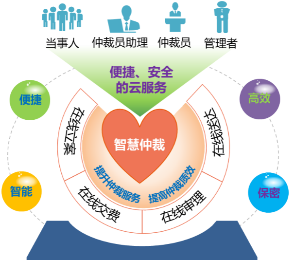 Rooted in the core tenets of "convenience, efficiency, intelligence, and confidentiality", this solution is fortified by advanced technological support, enabling a comprehensive suite of online services. These encompass online filing, online review, online payment, online hearings, electronic delivery, and other end-to-end online functionalities, furnishing parties, arbitrator assistants, arbitrators, and administrators with secure and user-friendly intelligent arbitration services. This seamless digital ecosystem significantly enhances the standard of arbitration services, elevating efficiency and quality across arbitration processes.
