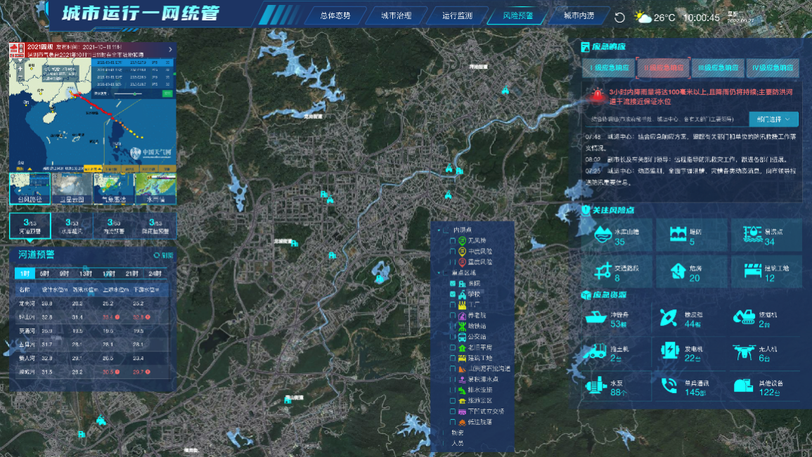 The Integrated Emergency Response and Command Center innovates emergency management methods by digital and intelligent means, improves the comprehensive level of emergency management, promotes automatic early warning of risks and hidden dangers, overall management of emergency resources, dynamic tracking of emergency response, and integrated command of rescue operations, and builds efficient coordination and integrated linkage mechanisms across departments, levels, and networks to continuously improve the level of mathematical intelligence in emergency management.