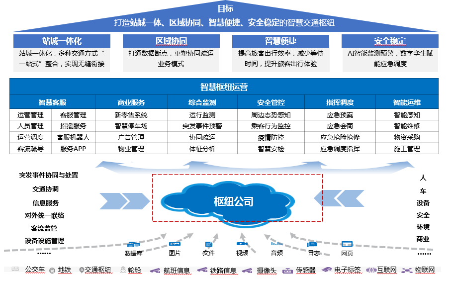 The Tod Smart Transportation Hub Solution is based on the core business of smart transportation hubs. It focuses on people, vehicles, equipment, security, environment, and commerce, and creates a smart transportation hub brain through front-end data collection, traffic data collection, and data governance. It uses intelligent sensing, AI intelligent analysis, integrated communication, and digital twin technologies to achieve a modern, intelligent operation that integrates smart customer service, commercial services, comprehensive monitoring, safety control, command dispatch, and intelligent maintenance. It aims to create a smart transportation hub characterized by integrated cities and stations, regional coordination, smart convenience, and safety and stability.