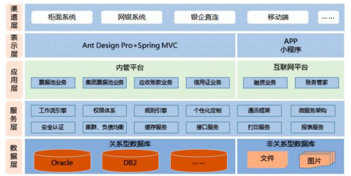 The bill pool platform adopts a modular design. Based on react technology, the SPA model is developed to achieve the separation of the front end and back end of the architecture. It is based on the microservices architecture, which can support distributed deployment.