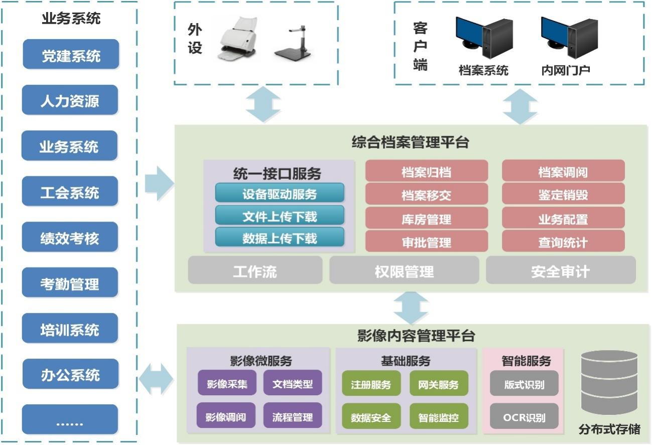 The integrated archive management platform covers four major functions: archive collection, management, storage, and access.