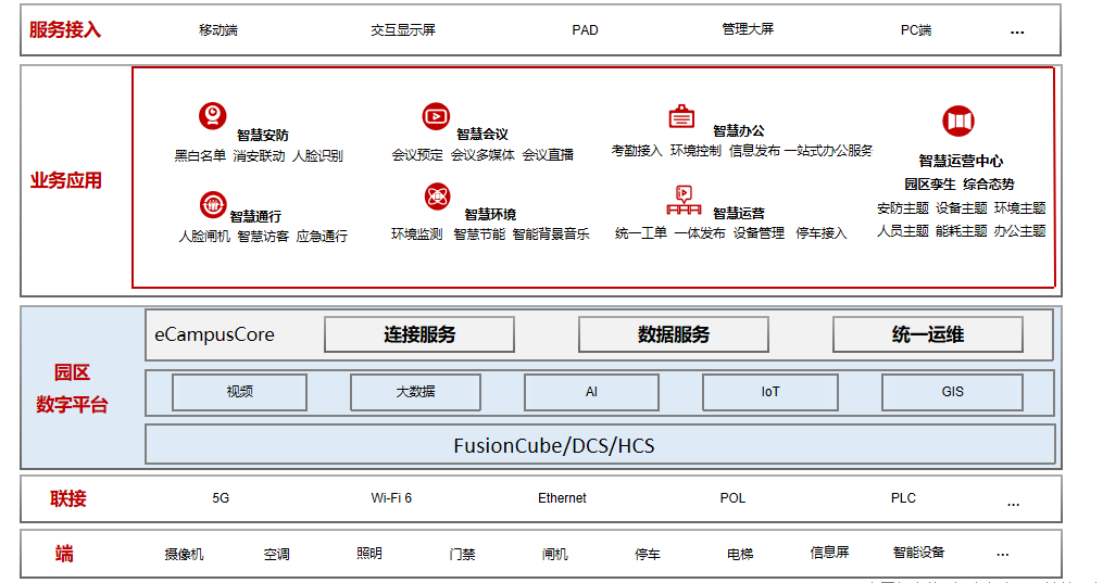 2. Smart Office Applications: Achieve unified operation and analysis capabilities for the park, providing a centralized, safe, and comfortable environment with convenient and intelligent services for customers, employees, third parties, and visitors through interfaces and mobile devices.
