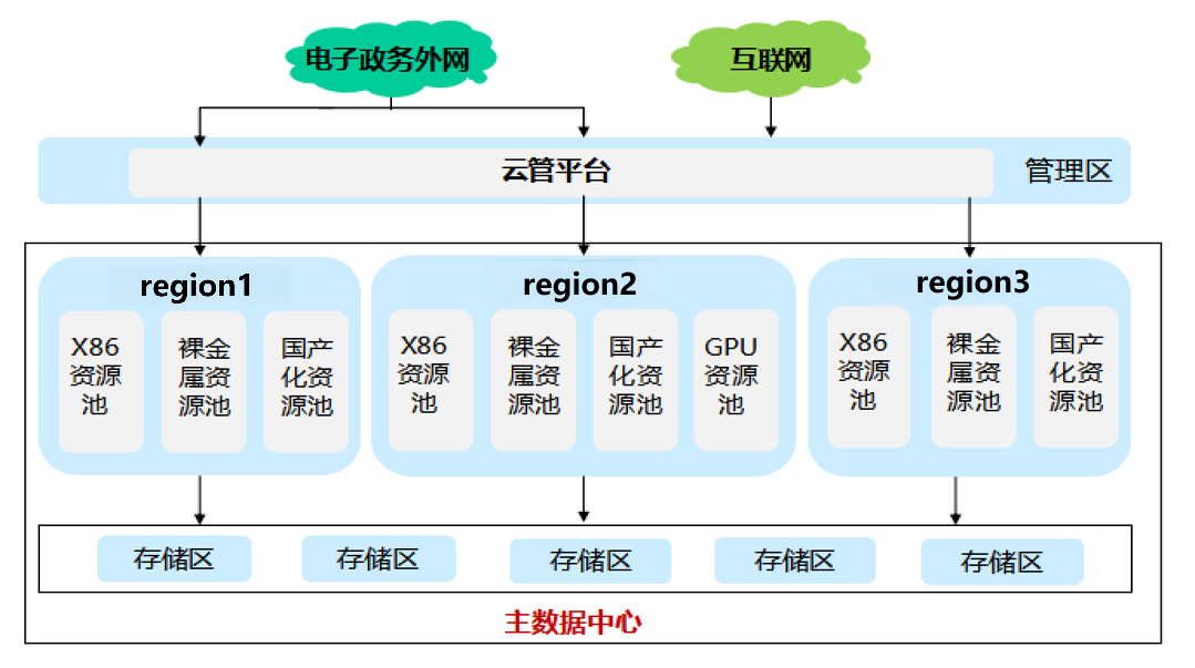 The Shandong Provincial Government Cloud Innovation Node plans to build the public service domain, administrative service domain and Internet zones within the e-government extranet. These zones are managed under a single cloud, providing customers with an integrated cloud experience. The platform is based on the Huawei Cloud architecture, which is scalable and reliable, and supports the evolution to a multi-center, high-availability disaster recovery architecture. The cloud platform architecture shifted from the traditional x86 architecture to the "x86 + domestic" hybrid architecture with multi-computing power, introducing the exclusive pool of domestic resources, as well as upper-level PaaS and middleware such as databases. It has taken into account the need for domestic alternatives in the government cloud, and planned the domestic resource area in the infrastructure resources, accelerating the development of the domestic industry in the government affairs sector.