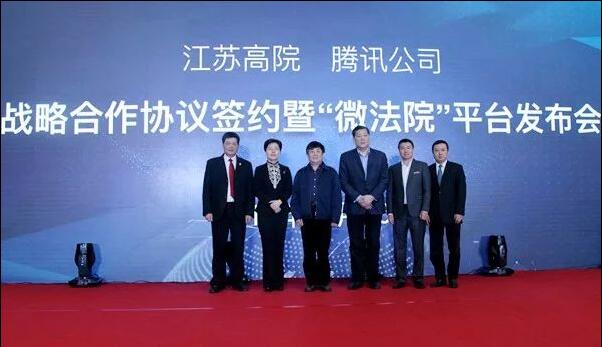 11月16日,江苏省高级人民法院与腾讯公司、北明软件共同召开新闻发布会,联合推出全国法院系统首个移动互联全业务生态平台——“微法院”。发布会上,江苏高院党组副书记、副院长周继业,腾讯公司党委委员、安全管理部