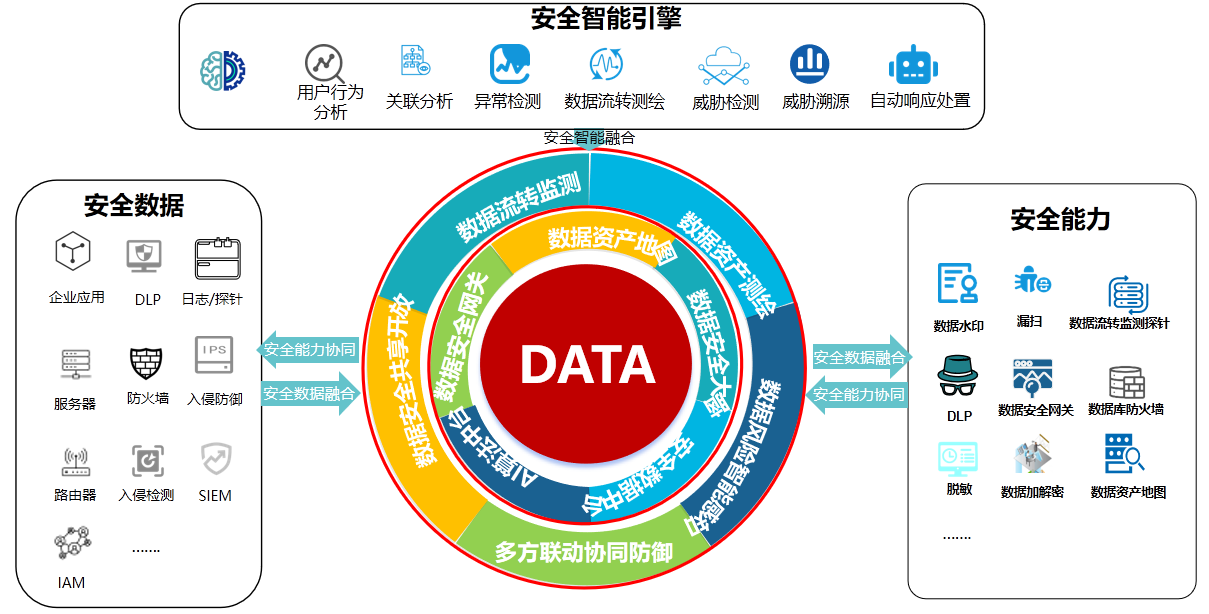 Data security solutions provide a variety of methods such as association analysis, behavior analysis, AI and abnormality detection. Relying on brain-like technology, they identify and predict known and unknown risks through small sample size or even no samples, support intelligent processing, and provide customers with a leading data security management and control closed-loop system.