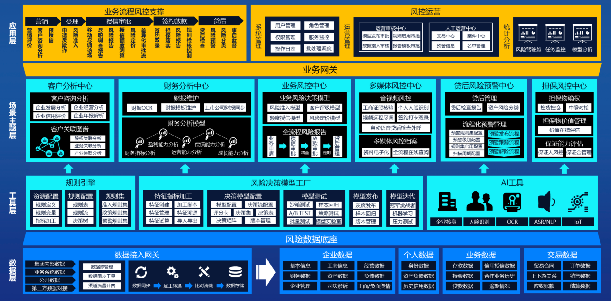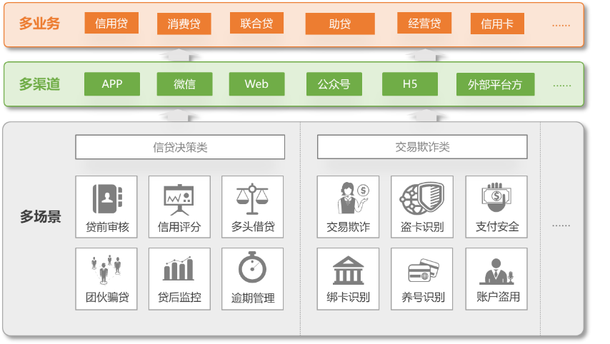 智能风控决策引擎解决方案,通过自研的智能风控系统为商业银行搭建一套支持多种信贷业务类型及全流程风险识别、决策管理的企业级风险决策引擎平台,支撑线上业务、线上线下结合业务、传统线下业务在贷前、贷中、贷后各个流程环节的数字化风控决策,实现全行级的中央风控,进一步提升商业银行金融服务的市场竞争力,推动商业银行业务向自动化、智能化、深层次的转型升级。