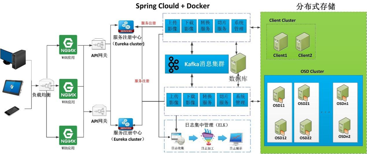 智能影像内容管理平台采取了微服务架构(SpringCloud + Docker)进行部署,存储采用分布式存储方式(支持:对象存储、分布式存储、分布式数据库SequoiaDB、文件式存储FastDFS、SDS、NAS等),增强了系统并发处理性能及数据的容错恢复能力,有效保证数据的安全。平台前期可根据业务量进行相应的初级配置,随着业务量的增长,可横向通过添加硬件的方式扩展主机的处理能力,做到“分期分批投入,弹性投入”。