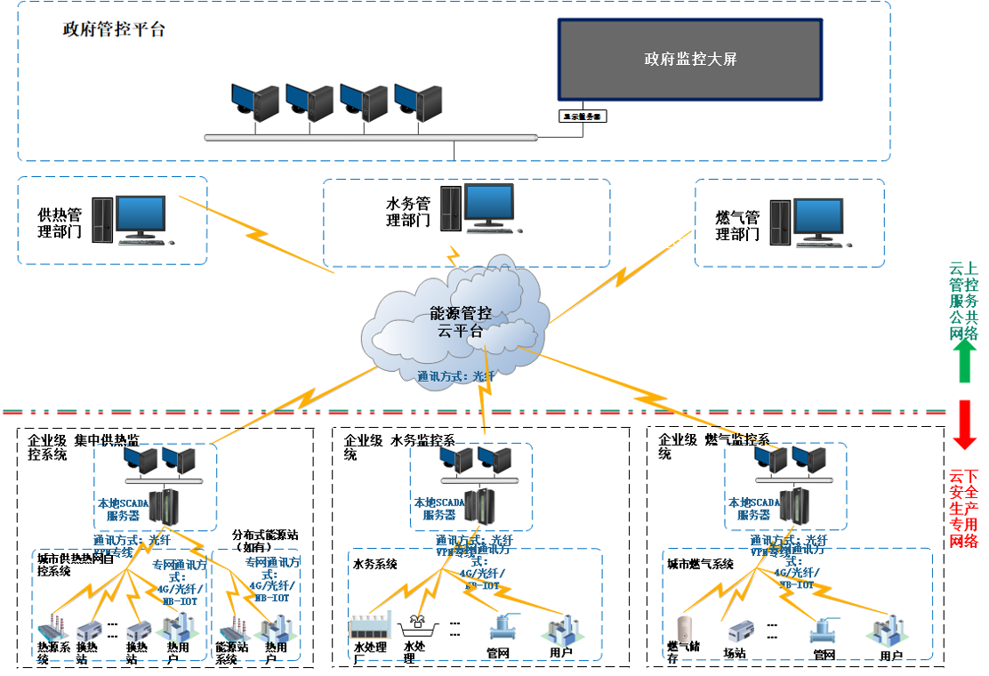 与政府相关部门管理平台的对接:包括城市能源管理与能耗监测平台、环境监测与温室气体排放监管平台、能源储备与调配监控平台、城乡建设与住房管理平台等。