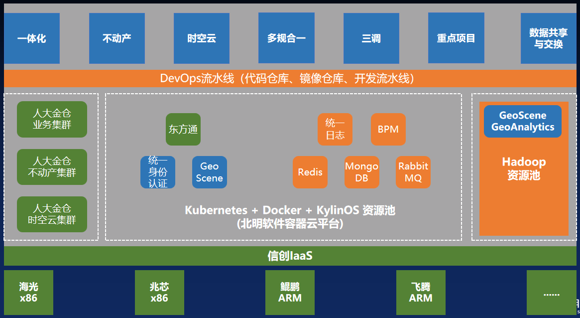 北明结合自身的集成经验,为用户提供一整套全局系统信创改造解决方案,包括:基于信创架构的硬件底座、基础软件架构规划、网络规划、安全规划,以及支撑业务系统开发商进行代码适配和性能调优等。利用北明容器云平台方案技术,为用户搭建基于大规模容器技术的PaaS平台,在适应政务场景的同时,充分利用信创云资源,满足用户业务场景高算力需求;通过弹性伸缩、自动健康检测和容灾等机制,提供满足等保标准的持续开发和集成、自动化运维等PaaS服务。