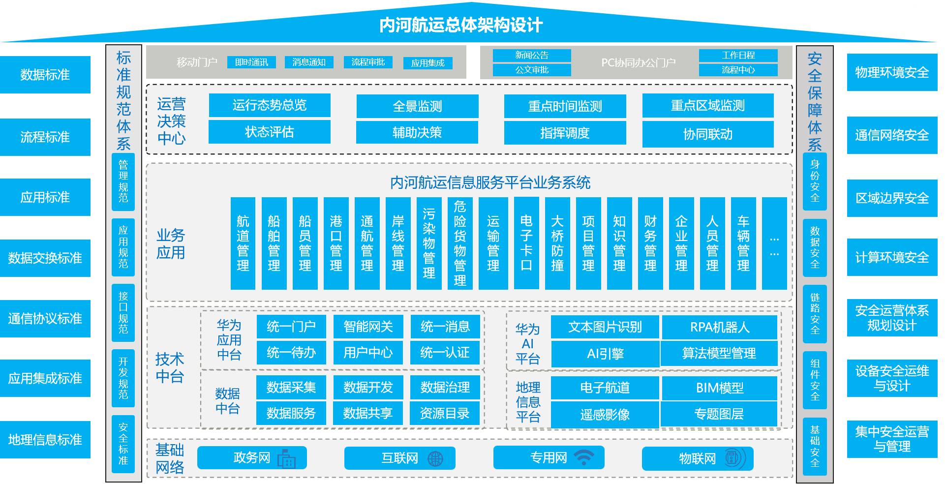 内河航运信息服务平台解决方案是一套综合性的航运管理系统,通过集成船舶调度、动态管理、污染物处置、视频监控、电子卡口管理、渡船异常识别、船闸一体化管理、通航要素管理、电子巡航等功能,实现内河航运的“数据一个库”、“服务一盘棋”、“交管一张图”、“监管一张网”,提升了内河航运的效率、安全性和环保水平,推动了内河航运市场的发展和可持续性。