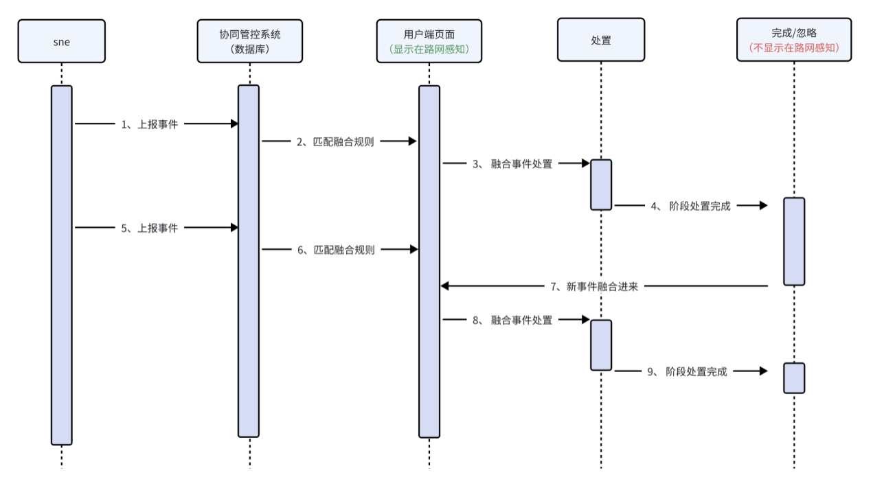 通过融合算法,将同一朝向上的多个有因果关联的独立事件融合成一融合事件。融合事件可批量处置,并还原事件因果发生流程,减少用户不必要的重复工作。