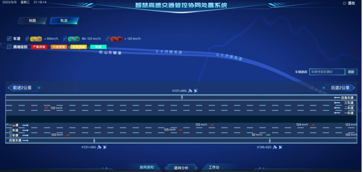 系统对正在运行的车辆可实时跟踪位置、轨迹线路、掌握驾驶规律,对历史通行车辆可还原事故、特殊车辆行驶轨迹。