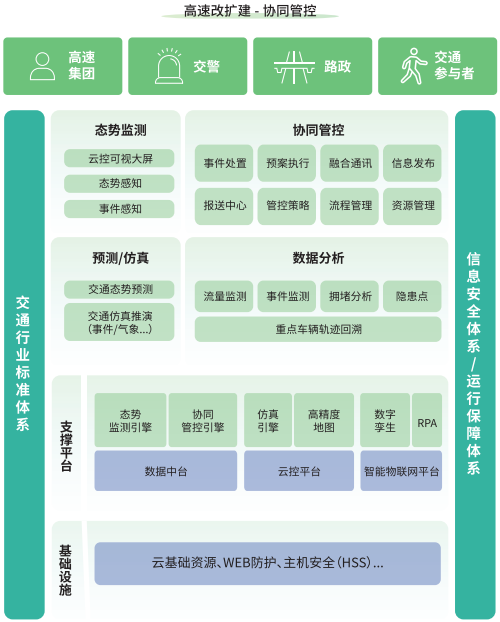 平台通过数据挖掘和交通仿真等技术,动态制定相应控制策略,替代原有的定制化的自控程序或人工的管控决策,实现基于交通现象的日常协同控制和基于交通事件的主动协同控制,以提高行车安全和道路利用率。