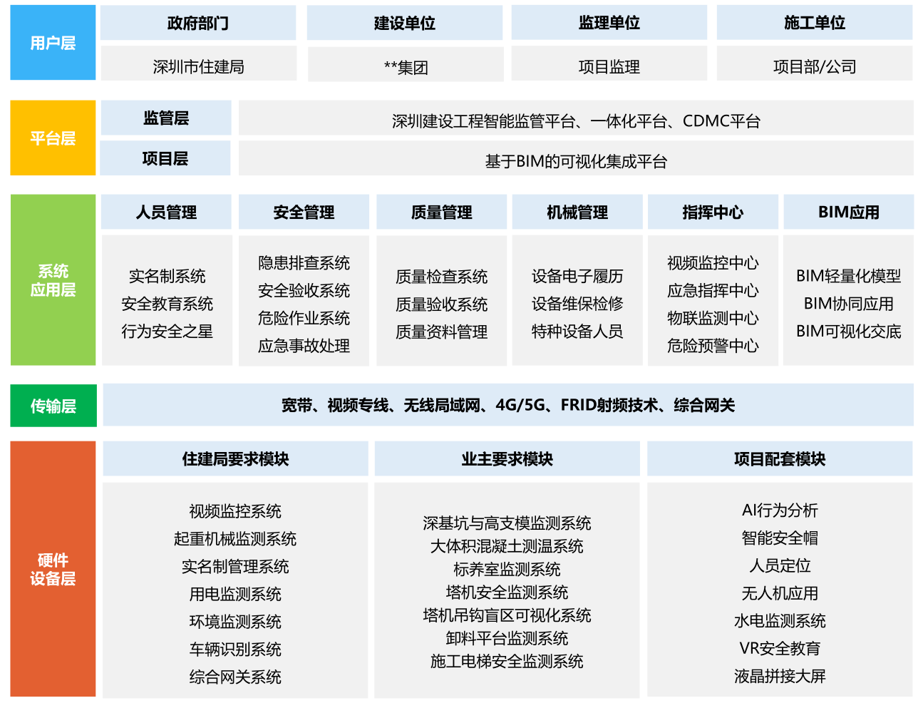 智慧工地平台基于信息化技术、物联网技术、视频监控技术等多种技术手段,对施工现场设备进行实时监测、预警、预防以及事件管理等,实时监控智能硬件运行信息,全程监控设备运行安全。