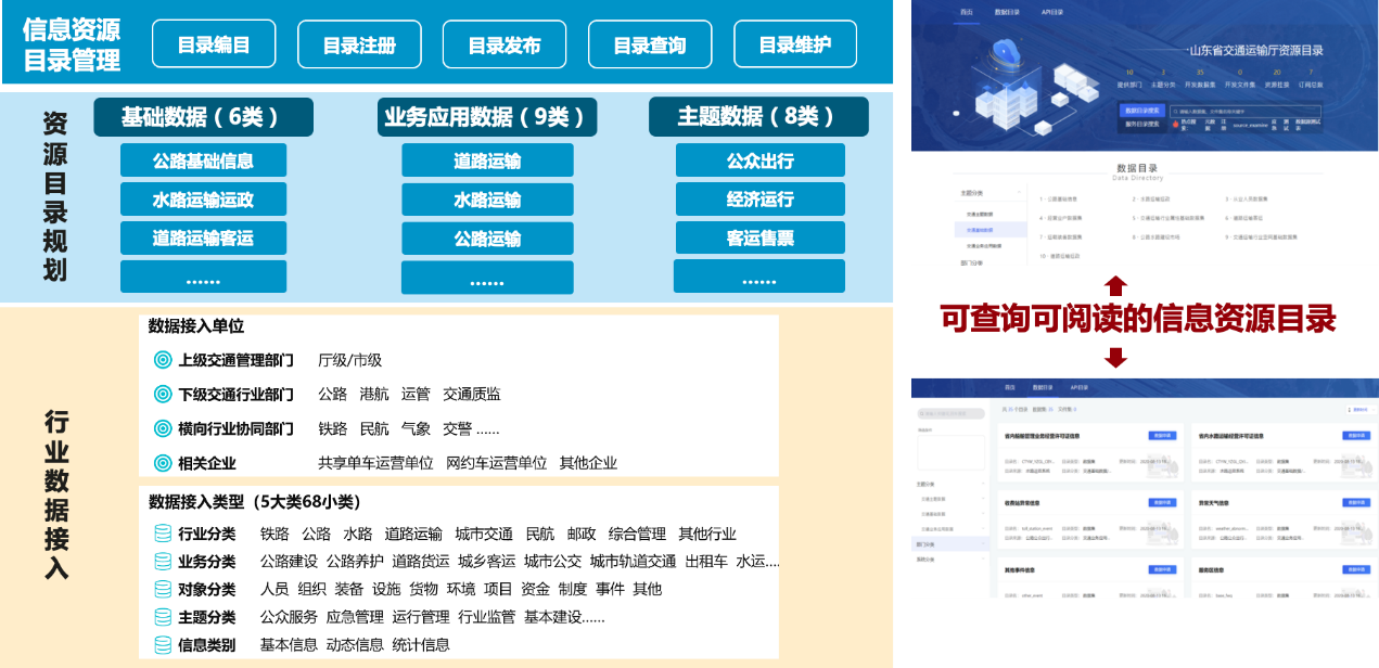 山东省交通厅数据资源管理平台建成了交通运输行业基础性、规范性和战略性统一的数据资源管理池,并形成全省统一的、规范的交通运输行业数据资源目录。