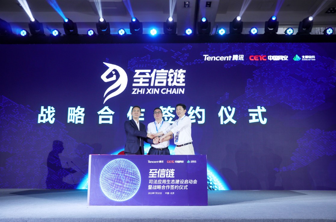 7月10日,“至信链”司法应用生态启动会及战略合作签约仪式在北京举行。“至信链”由中国电子科技网络信息安全有限公司(以下简称:中国网安)、腾讯公司、北明软件有限公司(以下简称:北明软件)为主要建设方,其中,中国网安负