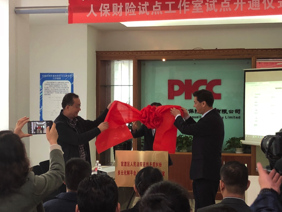 2018年10月11日下午,云南省昆明市“官渡区人民法院在线矛盾纠纷多元化解平台人保财险试点工作室”揭牌仪式在人保财险昆明市分公司举行。云南省高院民一庭庭长赵锐,官渡法院党组书记、院长晏晖,副院长缪宇,云南省保
