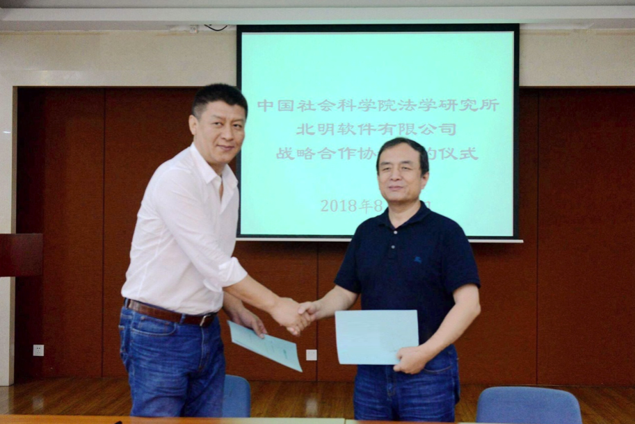 8月14日,北明软件有限公司与中国社会科学院法学研究所 战略合作签约仪式在北京顺利举行,中国社会科学院法学研究所所长、国际法研究所代所长陈甦研究员,北明软件有限公司董事长李锋出席仪式并讲话,法学研究所科研处