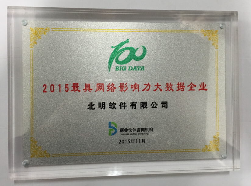 2015年11月25日,由国内IT商务合作第一平台“商业伙伴咨询机构”主办的“2015中国大数据生态系统峰会”在北京隆重举办。北明软件有限公司(以下简称“北明软件”)作为大数据服务提供商被授予“2015优秀大数据应用服