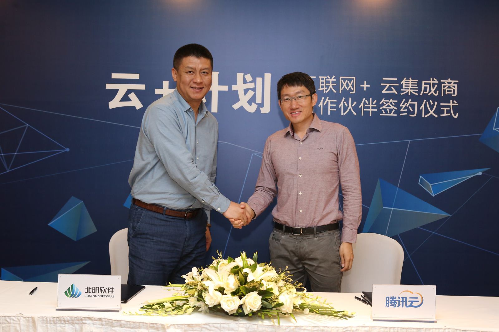 近日,北明软件有限公司(“北明软件”)与腾讯正式签署战略合作协议,宣布共同发力政企行业市场,深度推动“互联网+”国家战略落地。北明软件有限公司董事长李锋先生携公司高级副总裁赵立新、高级副总裁咸勇、副总裁颜军