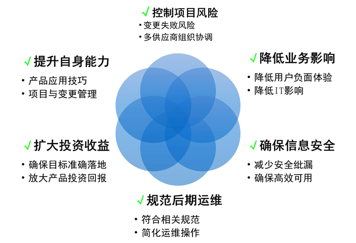 项目执行中,充分参考PMBOK和PRINCE2等项目管理方法,同时遵循在现有环境能实施所需的相关运维变更,确保项目风险可控。